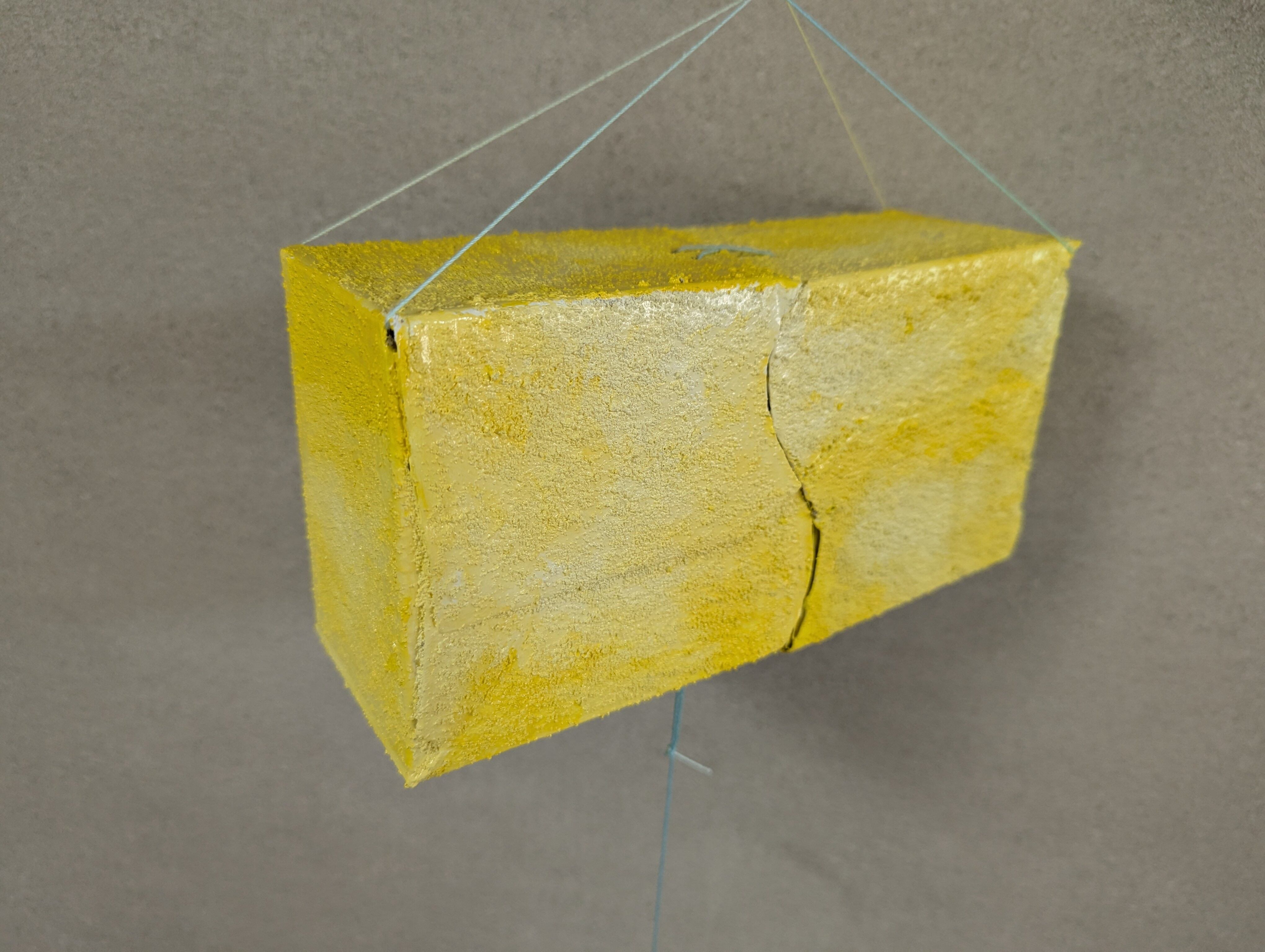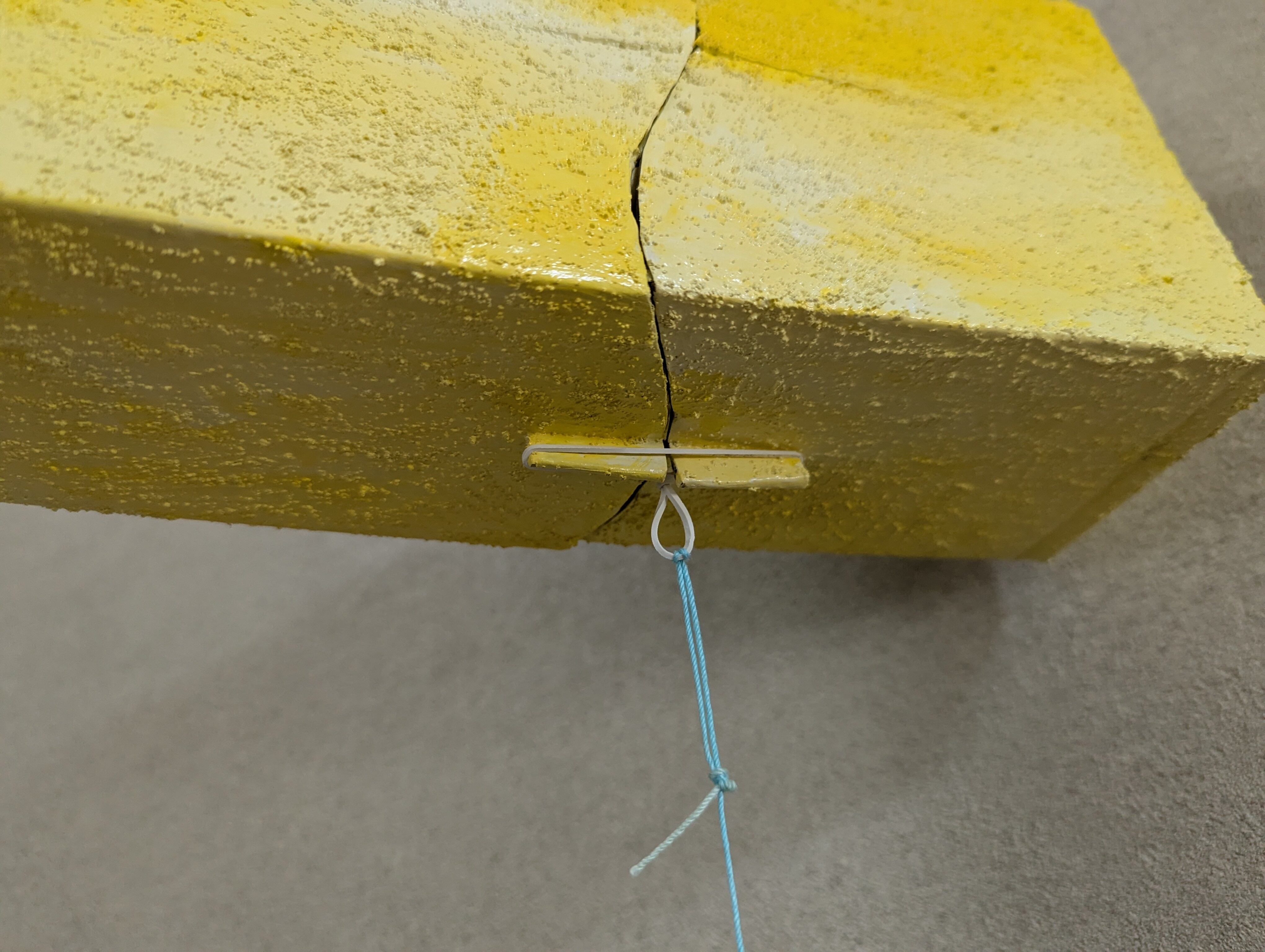 ザラザラのテクスチャーのうえに黄色と白でむらのある塗り。
