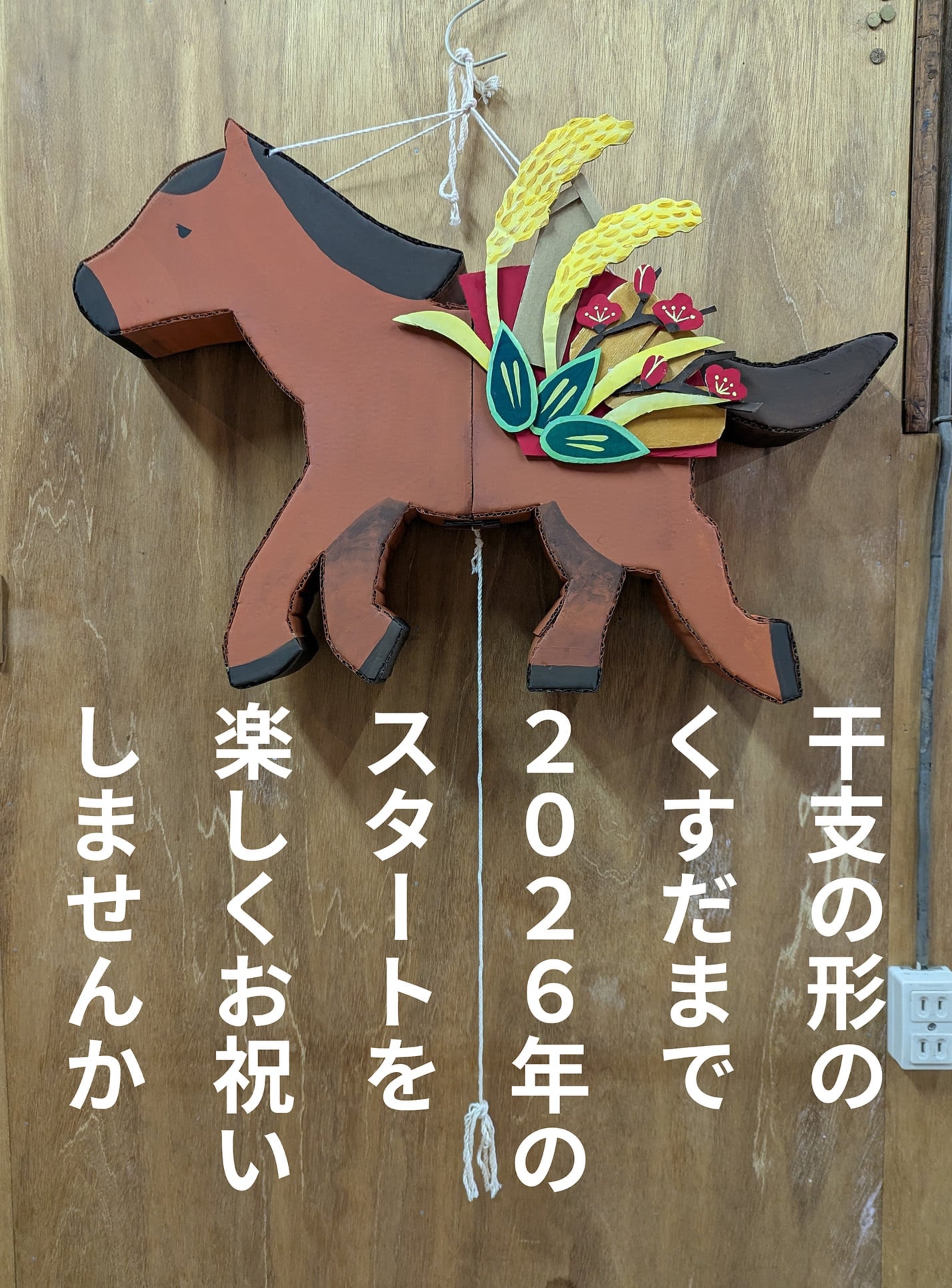 たれ幕に一年の目標を書いた干支形くすだまを、一年間自分の家やお店や会社に熊手のように飾っておくのも素敵だと思います。